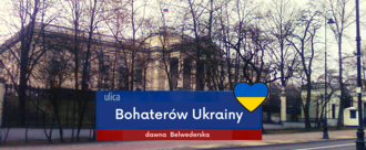 Chcemy ulicy Bohaterów Ukrainy w Warszawie!3 marca podobnej zmiany nazwy ulicy, przy której znajduje się Ambasada Rosji w Litwie, dokonał Prezydent Wilna. Czas na Warszawę! Wiele osób pyta o historyczny aspekt ul. Belwederskiej w Warszawie. Oczywiście zdaję sobie z tego sprawę, można to rozwiązać na różne sposoby, np. wydzielając jej kawałek lub też w drodze negocjacji przemianować ul. Spacerową, bo tu wątpliwości będą znacznie mniejsze, a też są, co prawda tylne, ale bramy Ambasady Rosji.40 z 100 PodpisyUtworzył(a) Piotr Cykowski | Akcja Demokracja