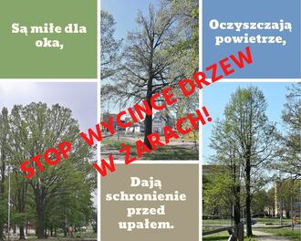 STOP! wycince drzew w ŻarachUważamy, że decyzja o przedmiotowej wycince byłaby bardzo szkodliwa dla całego miasta oraz nas, jego mieszkańców. Z uwagi na dużą powierzchnię asymilacyjną tych drzew, wytwarzają one ogromne ilości tlenu niezbędnego do życia, absorbują dodatkowo duże ilości CO2 oraz innych szkodliwych substancji jak pył zawieszony i inne szkodliwe związki, które są wytwarzane przez samochody oraz niską emisję. Od lat mamy w Żarach złą jakość powietrza na tym tle wycinanie drzew byłoby dodatkowym ciosem w ekosystem, jaki mamy w Żarach. Wpływają na estetykę przestrzeni – maskują elementy nieestetyczne i podkreślają piękno założeń architektonicznych. Drzewa pozytywnie wpływają na zdrowie. Umacniają więzi międzyludzkie, zwłaszcza w przypadku wspólnego sadzenia drzew i dbania o nie. Są inspiracją kulturową, intelektualną i duchową. Dają ludziom poczucie związku z miejscem. Są świadkami historii. Ochrona drzew to ochrona naszych interesów. Zgodnie z koncepcją usług ekosystemów korzyści, których dostarczają nam drzewa (czystsze powietrze, zmniejszone nakłady na oczyszczanie ścieków, ochrona przed hałasem, pochłanianie dwutlenku węgla, poprawa efektywności pracy itd.). Tymczasem jeśli dopuścimy do degradacji drzew, stracimy możliwość korzystania z usług, które świadczą.275 z 300 PodpisyUtworzył(a) Remigiusz Krajniak