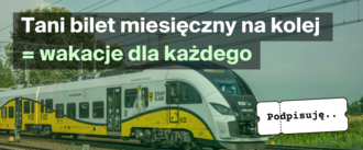 Wakacje z koleją! Bilet miesięczny za 100 zł terazWprowadzenie taniego biletu na kolej: • ułatwi podróżowanie rodzinom, seniorom, młodzieży i osobom o niższych dochodach, • zachęci do przesiadki z samochodu na kolej, ograniczając korki i smog, • wesprze walkę z kryzysem klimatycznym, czyniąc transport publiczny atrakcyjną alternatywą, • pobudzi lokalną turystykę i gospodarkę. Doświadczenia krajów zachodnich pokazują, że tani bilet miesięczny to nie tylko oszczędność dla obywateli, ale także impuls rozwojowy dla całego sektora transportu publicznego oraz lokalnej turystyki. Wzywamy do podjęcia zdecydowanych działań na rzecz wprowadzenia taniego, zintegrowanego biletu miesięcznego na całą sieć kolejową (a przynajmniej pociągi regionalne i TLK) w Polsce – dostępnego dla wszystkich, bez zbędnych ograniczeń.1 948 z 2 000 PodpisyUtworzył(a) Akcja Demokracja