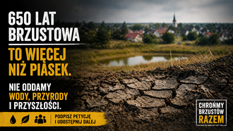 650 lat Brzustowa to więcej niż piasek. Nie oddamy wody, przyrody i przyszłościPlanowana kopalnia piasku „Brzustów II” to inwestycja odkrywkowa o wieloletnim charakterze, która może trwale zmienić stosunki wodne, krajobraz i warunki życia mieszkańców. Największe zagrożenia dla mieszkańców i środowiska to: • obniżenie poziomu wód gruntowych i ryzyko utraty wody w studniach • wzrost hałasu, zapylenia i intensywnego ruchu ciężarowego w bezpośrednim sąsiedztwie domów • trwała degradacja krajobrazu i terenów leśnych • negatywny wpływ na zdrowie mieszkańców, w tym dzieci Inwestycja planowana jest na obszarze o szczególnym znaczeniu przyrodniczym, powiązanym ze Spalskim Parkiem Krajobrazowym oraz jego otuliną, a także w sąsiedztwie rezerwatów przyrody. To fragment dawnej Puszczy Pilickiej - obszar cenny dla bioróżnorodności i lokalnych ekosystemów. To również region, który już dziś zmaga się z suszą i deficytem wody. Województwo łódzkie należy do najbardziej zagrożonych stepowieniem w Polsce, a poziom wód gruntowych jest coraz niższy. W takich warunkach dopuszczenie inwestycji mogącej dodatkowo pogłębiać problemy wodne jest działaniem wysokiego ryzyka. Nie sprzeciwiamy się rozwojowi. Sprzeciwiamy się decyzjom podejmowanym bez rzetelnej wiedzy, bez pełnej oceny skutków i bez realnego udziału mieszkańców. Dlatego domagamy się przeprowadzenia pełnej oceny oddziaływania na środowisko i zatrzymania tej inwestycji, jeśli nie da się wykluczyć jej negatywnych skutków dla ludzi i przyrody.253 z 300 PodpisyUtworzył(a) Gaweł Andrzejewski