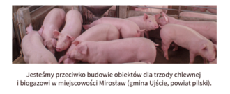 Jesteśmy przeciwko budowie obiektów dla trzody chlewnej i biogazowi w miejscowości MirosławJesteśmy przeciwko budowie obiektów dla trzody chlewnej i biogazowi w miejscowości Mirosław! Jako argumenty uzasadniające niniejszy sprzeciw wnosimy następujące uwagi: 1. Degradację jakości życia i zdrowia mieszkańców w związku z planowanymi inwestycjami w sąsiedztwie naszej wsi, co naraża mieszkańców na uciążliwości związane z tego rodzaju inwestycjami. 2. Zanieczyszczenie powietrza i uciążliwy odór. Mimo zapewnień o zastosowaniu nowoczesnych technologii emitowane będą charakterystyczne, nieprzyjemne zapachy, które mogą być wyczuwalne na dużą odległość. Taka sytuacja obniży komfort życia i będzie stanowić stałe źródło uciążliwości dla mieszkańców. Substancje odorowe, takie jak: siarkowodór, są przenoszone przez wiatr na znaczne odległości, co wpłynie na komfort życia mieszkańców i jakość środowiska naturalnego. W Polsce jest brak przepisów jasno regulujących badania i redukcję odorów, co stawia lokalną społeczność w obliczu trudności w egzekwowaniu ochrony przed takimi uciążliwościami. Ponadto emisje gazów, takich jak: dwutlenek azotu, dwutlenek siarki, pyły i węglowodory aromatyczne, mogą negatywnie wpłynąć na zdrowie mieszkańców. Liczne badania wskazują, że odory mogą powodować depresję, zmęczenie, problemy z oddychaniem, podrażnienia oczu i alergie, stres i problemy ze snem. Mogą też być emitowane lotne związki organiczne, które w większych stężeniach mogą negatywnie wpływać na zdrowie, szczególnie dzieci, osób starszych i osób z chorobami układu oddechowego. 3.Negatywny wpływ na środowisko: - Ryzyko zanieczyszczenia wód gruntowych. W przypadku awarii lub nieprawidłowego działania instalacji istnieje realne ryzyko przedostania się substancji niebezpiecznych do gleby i wód gruntowych, co może mieć katastrofalne skutki dla mieszkańców korzystających z prywatnych ujęć wody. - Plaga insektów i gryzoni. Procesy zachodzące w obu inwestycjach w wyniku przetwarzania obornika, gnojówki oaz innych odpadów (przemysłowych, spożywczych, poubojowych), co zwiększa ryzyko inwazji much, komarów, karaluchów czy szczurów. Te szkodniki mogą przenosić choroby, a ich rozprzestrzenianie jest trudne do kontrolowania. -Inwestycje takie jak chlewnie mogą stanowić źródło zoonoz, czyli chorób przenoszonych ze zwierząt na ludzi, takich jak grypa ptasia, afrykański pomór świń, czy inne choroby zakaźne. Skupienie dużej ilości zwierząt w jednym miejscu może sprzyjać szybkiemu rozprzestrzenianiu się tych chorób, co stanowi dodatkowe zagrożenie zdrowia publicznego. 5. Obniżenie wartości nieruchomości w sąsiedztwie takich inwestycji spowoduje spadek atrakcyjności tych terenów dla mieszkańców. Takie inwestycje drastycznie pogorszą sytuację mieszkańców, gdzie domy ich są dorobkiem całego życia. Budowa i funkcjonowanie takich inwestycji w naszej miejscowości będą miały katastrofalny wpływ na wartość nieruchomości, co narusza zasady współżycia społecznego i budzi słuszne poczucie niesprawiedliwości wśród mieszkańców oraz właścicieli działek i domów. Takie skutki nie są jedynie teoretyczne -są potwierdzone zarówno przez praktykę, jak i liczne analizy rynku nieruchomości w pobliżu podobnych inwestycji. 6. Brak długoterminowego planu rozwoju regionu: -Inwestycje w takie chlewnie i biogazownie mogą ograniczyć możliwość rozwoju innych gałęzi gospodarki w regionie np. rolnictwa ekologicznego, które mogłoby przynieść większe korzyści społeczności lokalnej w dłuższym okresie. - Planowanie takich inwestycji może być wynikiem braku alternatywnego planu zagospodarowania przestrzennego oraz zrównoważonego rozwoju gospodarki lokalnej. Wiele rodzin w naszej miejscowości zainwestowało swoje oszczędności w zakup ziemi, budowę domów i modernizację swoich posesji, traktując je jako bezpieczną inwestycję i miejsce życia dla kolejnych pokoleń. Dla wielu właścicieli oznacza to nie tylko straty finansowe, ale także utratę możliwości sprzedaży nieruchomości w przyszłości. W naszej ocenie decyzja o realizacji takich inwestycji została podjęta z naruszeniem podstawowych zasad transparentności i bez współpracy z lokalną społecznością, a jej skutki mogą stanowić bezpośrednie zagrożenie dla zdrowia, środowiska, jakości życia mieszkańców oraz lokalnej infrastruktury. Podkreślamy, że inwestycje te nie znajdują uzasadnienia w kontekście lokalnego interesu społecznego ani nie wpisują się w potrzeby, ani charakter naszej miejscowości. Realizacja tych projektów, w obecnej formie i lokalizacji, jest nie do zaakceptowania. Inwestycje te są obiektami, które mogą w wieloraki sposób negatywnie oddziaływać na środowisko, w tym na kluczowy element tego środowiska-mieszkańców. Decyzja o budowie takich inwestycji w tak bliskim sąsiedztwie wsi powadzi do konfliktu między inwestorem publicznym (ochrona mieszkańców przed uciążliwościami) a interesem inwestorów. Stawianie interesu prywatnego ponad dobrem lokalnej społeczności jest rażącym naruszeniem podstawowych zasad równowagi społecznej i ekonomicznej.57 z 100 PodpisyUtworzył(a) Artur Łazowy Stowarzyszenie EFFATA