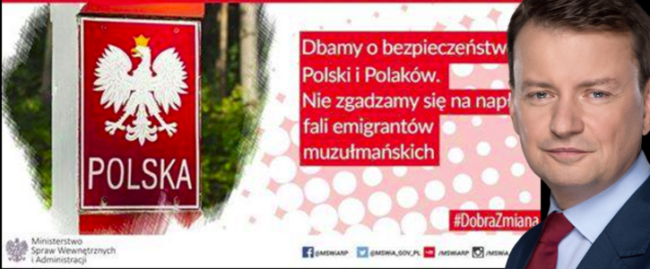 Ministerstwo Spraw Wewnętrznych opublikowało grafiki promujące prace resortu, w których chwali się, że „dba o bezpieczeństwo Polski i Polaków” poprzez „brak zgody na napływ fali emigrantów muzułmańskich” (pisownia oryginalna).
